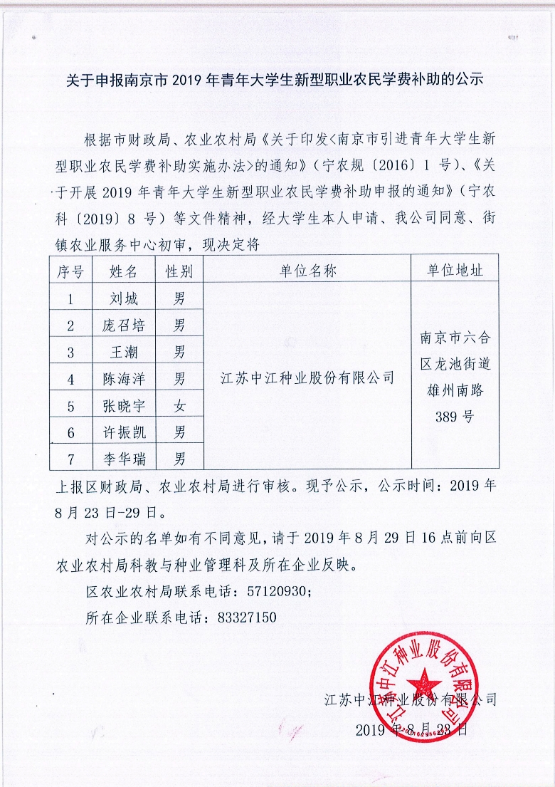 根據(jù)市財(cái)政局、農(nóng)業(yè)農(nóng)村局《關(guān)于印發(fā)<南京市引進(jìn)青年大學(xué)生新型職業(yè)農(nóng)民學(xué)費(fèi)補(bǔ)助實(shí)施辦法>的通知》(寧農(nóng)規(guī)〔2016〕1號)、《關(guān)于開展2019年青年大學(xué)生新型職業(yè)農(nóng)民學(xué)費(fèi)補(bǔ)助申報(bào)的通知》(寧農(nóng)科〔2019〕8號)等文件精神,經(jīng)...  [詳細(xì)]