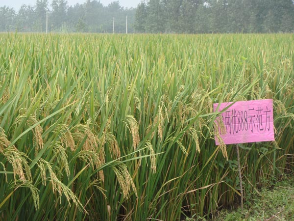 2009年是我公司兩系雜交秈稻新品種“新兩優(yōu)6380”在高郵市推廣的第三年,該品種以其優(yōu)異的表現(xiàn)獲得了種植農(nóng)戶和推廣部門的一致好評,今年銷售量占高郵市雜交秈稻市場總量的一半以上,在菱塘回族鄉(xiāng)80%的面積都是種植的該品種,一般畝產(chǎn)1300斤,高產(chǎn)田塊超過1500斤,千畝高產(chǎn)方比比皆是。今年初又引進(jìn)我公司最新國家審定的兩系雜交秈稻新品種“鹽兩優(yōu)888”示范種植,百畝攻關(guān)方測產(chǎn)畝產(chǎn)達(dá)到了1700斤。