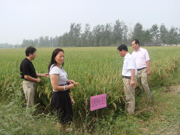 2009年9月6日我公司組織了高郵市雜交秈稻主要種植的菱塘、天山、郭集、宋橋等鄉(xiāng)鎮(zhèn)的村組書記、主任和經(jīng)銷商代表隆重召開了新兩優(yōu)6380和鹽兩優(yōu)888的高產(chǎn)現(xiàn)場觀摩會,在菱塘回族鄉(xiāng)清真村參觀了新兩優(yōu)6380千畝高產(chǎn)方和鹽兩優(yōu)888的百畝高產(chǎn)攻關(guān)方,反響強烈,均表示明年要重點推廣這兩個表現(xiàn)優(yōu)異、能使農(nóng)民增產(chǎn)增收的好品種。