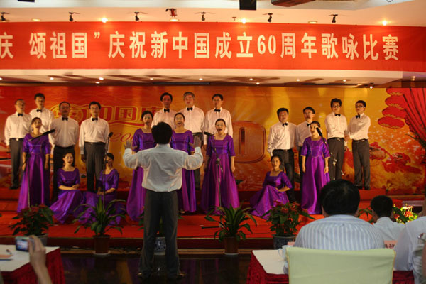 我公司21名員工代表,于29日下午參加了省農(nóng)林廳組織的“迎國慶、頌祖國歌詠比賽”,在公司領(lǐng)導(dǎo)的直接關(guān)心、參與下,通過全體參賽人員的積極參與和共同努力,我們的合唱得到評(píng)委會(huì)的一致好評(píng),榮獲二等獎(jiǎng)。我們的參賽歌曲是《映山紅》、《游擊隊(duì)歌》。