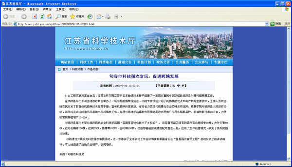 江蘇省科技廳報道