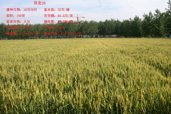 淮麥26是一個集高產(chǎn)、穩(wěn)產(chǎn)、多抗、優(yōu)質(zhì)、廣適于一身的淮麥系列品種新秀,是淮麥系列品種中最具競爭力和生命力的優(yōu)秀品種之一。