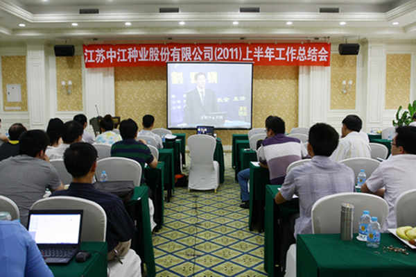 江蘇中江種業(yè)股份有限公司(2011)上半年工作總結(jié)會(huì),于2011年7月19日下午在安徽巢湖碧桂園鳳凰酒店召開(kāi)。公司管理層、各分公司、子公司,部門負(fù)責(zé)人以及員工60余人參加了會(huì)議,江蘇農(nóng)林職業(yè)技術(shù)學(xué)院朱洪生書(shū)記專程出席會(huì)議。
