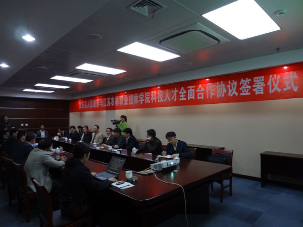 2011年11月15日上午,江蘇農(nóng)林職業(yè)技術(shù)學(xué)院與如東縣人民政府在如東縣會(huì)議中心簽署了《科技人才全面合作協(xié)議》,雙方將在農(nóng)林領(lǐng)域開展廣泛的深入合作,建立產(chǎn)學(xué)研合作機(jī)制,推動(dòng)學(xué)院新型農(nóng)業(yè)技術(shù)人才的培養(yǎng)、新型產(chǎn)學(xué)研協(xié)作教育模式的建立。