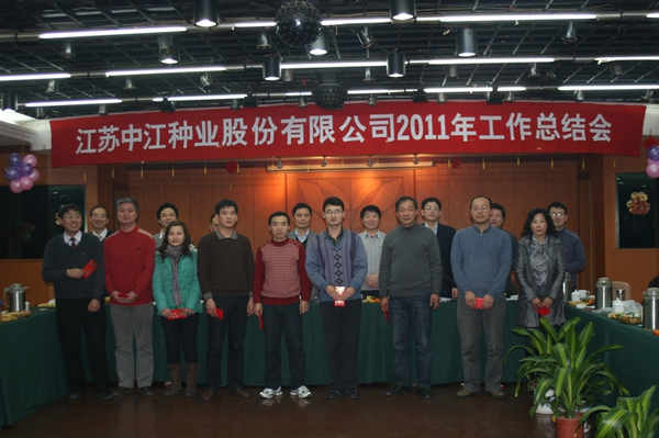 江蘇中江種業(yè)股份有限公司(2011)年度工作總結(jié)會(huì),于2012年1月15日下午在鳳西賓館金禧大廳召開(kāi),全體員工及控股子公司負(fù)責(zé)人出席了會(huì)議。江蘇農(nóng)林職業(yè)技術(shù)學(xué)院俞衛(wèi)東院長(zhǎng),代表學(xué)院到會(huì)看望了大家。