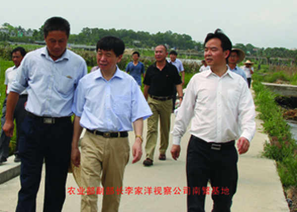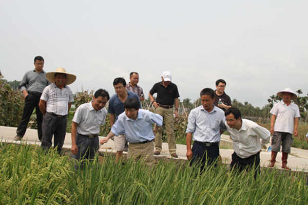 4月13日,農(nóng)業(yè)部副部長、中國農(nóng)業(yè)科學(xué)院院長李家洋院士在公司南繁基地,重點(diǎn)考察了我公司利用中科院遺傳所提供的超高產(chǎn)水稻理想株型基因(IPA1)材料配制的雜交水稻新組合表現(xiàn)情況,對該超高產(chǎn)基因材料配制的雜交水稻組合的產(chǎn)量潛力、應(yīng)用前景給予了的肯定。并對下一步科研工作做了具體的指導(dǎo),希望中科院遺傳所劉貴富博士及其團(tuán)隊(duì)與中江種業(yè)進(jìn)一步加強(qiáng)科研合作,充分利用各自的平臺和優(yōu)勢,為我國的農(nóng)業(yè)科研和生產(chǎn)作出應(yīng)有的貢獻(xiàn)。