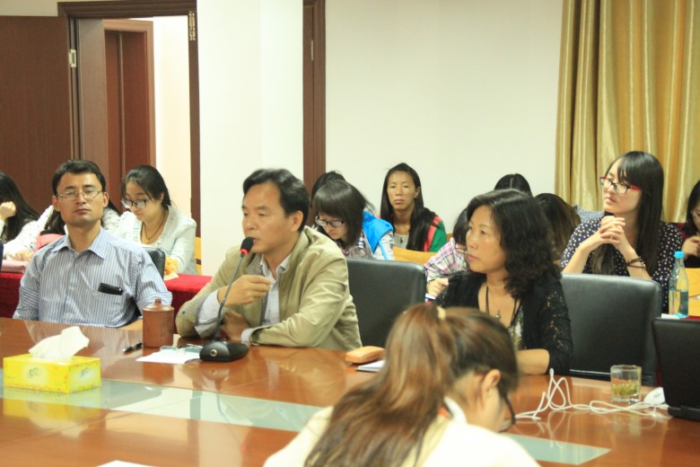 在會議室,質(zhì)檢部經(jīng)理宋賢勇介紹了種子檢驗規(guī)程以及所操作的儀器設(shè)備;隨后,羅德祥所長介紹了公司育種以及新品種研發(fā)工作。