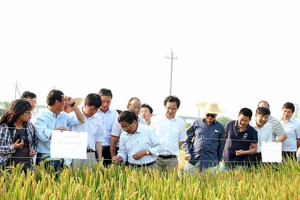 2015年4月14日,李家洋、謝華安、韓斌三位院士及萬(wàn)建民、劉貴富、錢(qián)前等國(guó)內(nèi)生物育種界知名專(zhuān)家考察公司科研育種南繁基地。江蘇省種子管理站站長(zhǎng)鄒芳剛、公司總經(jīng)理蔣紅云陪同考察。