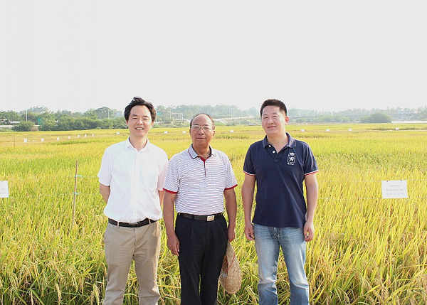 李家洋、謝華安、韓斌三位院士以及萬(wàn)建民所長(zhǎng)、鄒芳剛站長(zhǎng)等合影