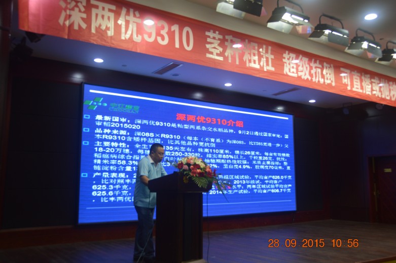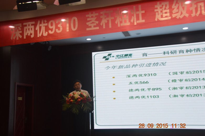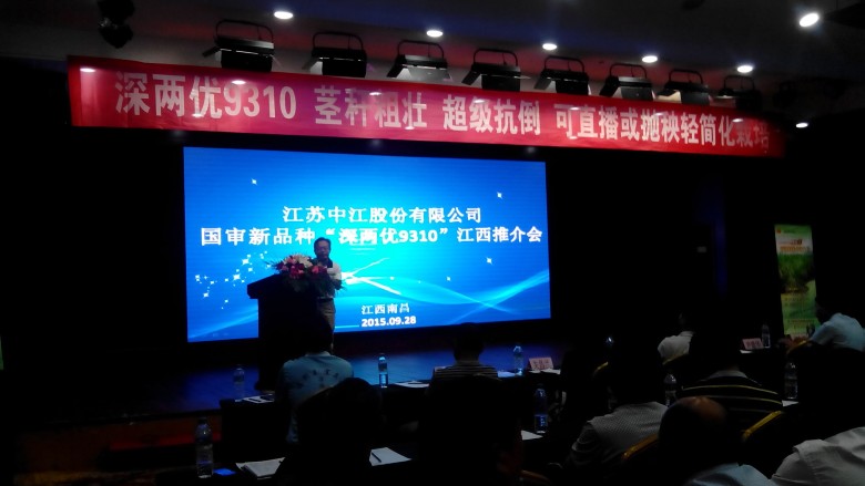 9月28-29日,國審新品種“深兩優(yōu)9310”江西推介會在南昌舉行,來自全省200多位經(jīng)銷商、種植大戶參加會議,公司董事長王福銀,副總經(jīng)理查軍民,江西農(nóng)科院水稻所所長尹建華,江西農(nóng)業(yè)大學(xué)農(nóng)學(xué)院副院長朱昌蘭,南昌市種子管局書記夏忠志,南昌市農(nóng)科院院長馬眾文,江西分公司總經(jīng)理熊茂龍等領(lǐng)導(dǎo)出席會議,會議由水稻種子事業(yè)部經(jīng)理黃國華主持。