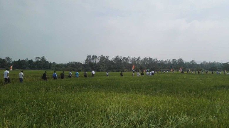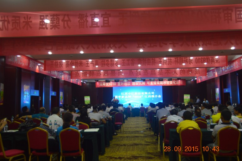 首先江西分公司熊茂龍總經(jīng)理致歡迎詞,對來會嘉賓表示最熱烈歡迎。種植大戶代表新建縣熊會平、永修縣姜道華分別介紹了“深兩優(yōu)9310” 100畝直播田和移栽田的種植表現(xiàn)情況;經(jīng)銷商代表鄱陽縣王躍進經(jīng)理、新余市艾建勇經(jīng)理分別介紹了本地區(qū)“深兩優(yōu)9310”示范推廣情況;水稻種子事業(yè)部經(jīng)理黃國華介紹了“深兩優(yōu)9310”特征特性及江西各地推廣示范情況江;江西分公司熊總對“深兩優(yōu)9310”市場運作打算做了說明;公司副總經(jīng)理查軍民介紹了公司雜交水稻事業(yè)發(fā)展規(guī)劃及“深兩優(yōu)9310”生產(chǎn)情況。隨后江西農(nóng)業(yè)大學(xué)農(nóng)學(xué)院朱昌蘭院長、江西農(nóng)科院水稻所尹建華所長分別做了講話,朱院長希望加強校企合作、選擇好的合作伙伴,加快江西農(nóng)大新品種科研成果轉(zhuǎn)化。尹所長希望在科研上加強同中江種業(yè)合作,并從資深專家的角度對“深兩優(yōu)9310”的技術(shù)栽培做了深入解讀。最后王福銀董事長做總結(jié)講話,王董事長首先對各位領(lǐng)導(dǎo)、專家、經(jīng)銷商朋友多年來支持中江種業(yè)事業(yè)的發(fā)展表示衷心感謝,同時介紹了公司發(fā)展概況,“深兩優(yōu)9310”在公司雜交水稻品種建設(shè)上又邁出了可喜的一步,引起業(yè)內(nèi)經(jīng)銷商、專家朋友廣泛關(guān)注表示充分肯定,公司將不斷加強科研合作,不斷推出雜交水稻新品種,同經(jīng)銷商朋友互利共贏,共創(chuàng)美好未來。29號上午來賓朋友們觀摩了“深兩優(yōu)9310”在新建縣溪霞鎮(zhèn)100畝直播田和永修縣艾城鎮(zhèn)100畝移栽田,“深兩優(yōu)9310”田間表現(xiàn)贏得來賓朋友的一致好評,當(dāng)天中午現(xiàn)場就有經(jīng)銷商、種植大戶預(yù)付種子定金和簽訂銷售合同。