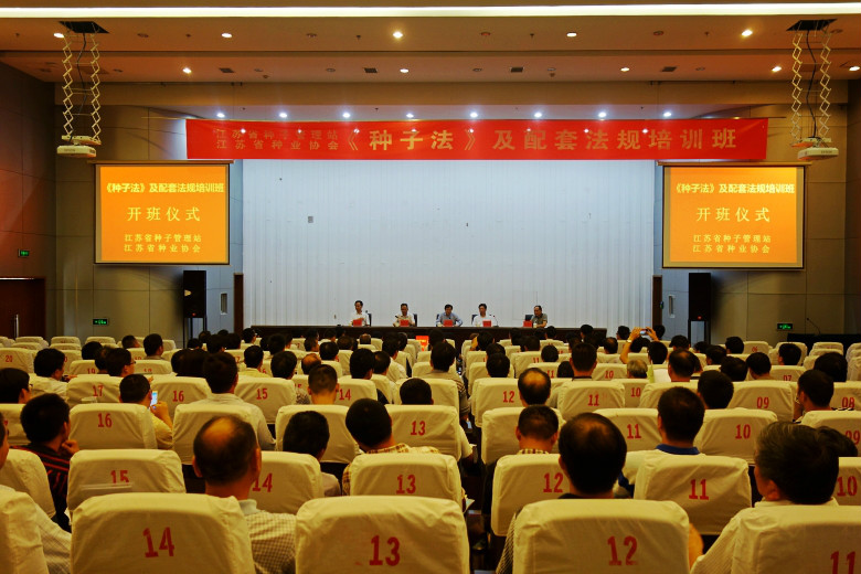 8月16-19日,江蘇省種子管理站、江蘇省種業(yè)協(xié)會在江蘇農(nóng)林職業(yè)技術學院舉辦《種子法》及配套法規(guī)培訓班。來自全省各市縣種子管理機構(gòu)管理人員,以及省種業(yè)協(xié)會企業(yè)會員負責人和業(yè)務骨干約300余人參加了培訓。培訓會由江蘇省種子管理站副站長陳國斌主持。