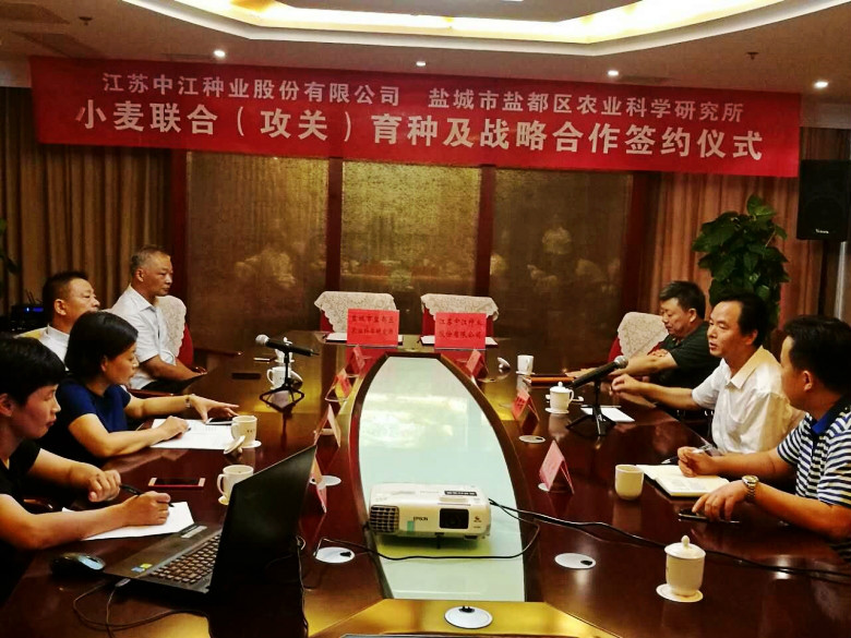 為適應(yīng)農(nóng)業(yè)供給側(cè)改革需要,加強(qiáng)科企合作,整合優(yōu)勢(shì)資源,協(xié)同創(chuàng)新,聯(lián)合攻關(guān)育種。8月12日上午,公司與鹽城市鹽都區(qū)農(nóng)業(yè)科學(xué)研究所小麥“聯(lián)合(攻關(guān))育種及合作開發(fā)”戰(zhàn)略合作簽約儀式在鹽城舉行。鹽城市種子管理站劉標(biāo)書記,鹽都區(qū)農(nóng)委陳志清副主任,鹽都區(qū)種子管理站洪全國(guó)站長(zhǎng)等領(lǐng)導(dǎo)、專家應(yīng)邀參加。會(huì)議由鹽都農(nóng)委陳志清副主任主持。