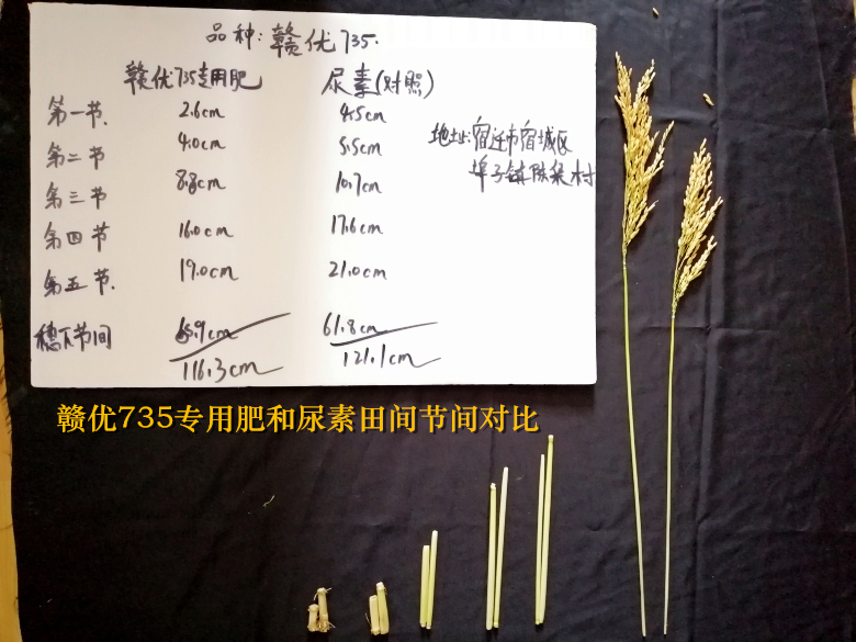 普瑞豐艾方部長在田間講解專用肥的成分及用法用量。艾部長表示,專用肥是根據(jù)贛優(yōu)735的特征特性和高產(chǎn)所需的條件量身定制的肥料,田間施用專用肥對水稻有五個方面的好處:一是大田移栽后返青快,縮短緩苗期,防治僵苗,提高抗逆能力;二是促進(jìn)低位分蘗,矮壯多蘗,搭好豐產(chǎn)架;三是促進(jìn)迅速扎根,根系發(fā)達(dá),提高肥料利用率;四是縮短基部節(jié)間,增加管壁厚度,增強(qiáng)抗倒伏能力;五是延緩功能葉片的衰老,促進(jìn)灌漿提高結(jié)實率,千粒重,改善米質(zhì),增加產(chǎn)量,提高畝效益。施用時間:直播田在25-30天(3葉期)施用20斤/畝;移栽田及機(jī)插田在移栽后5-10天施用20斤/畝。一包肥料是20斤(代替20斤尿素),施用時根據(jù)田間肥力水平而定,底肥不足的田塊增加10斤尿素。