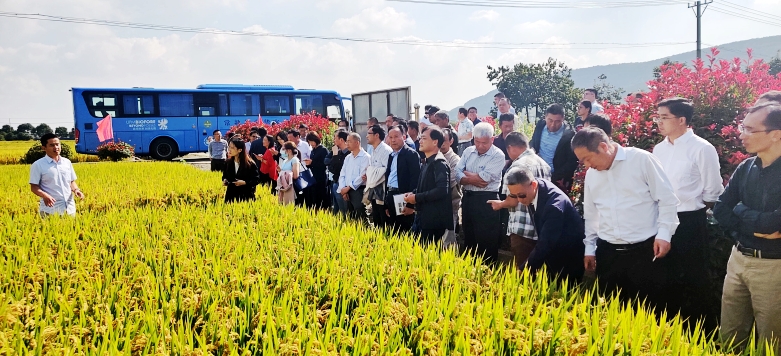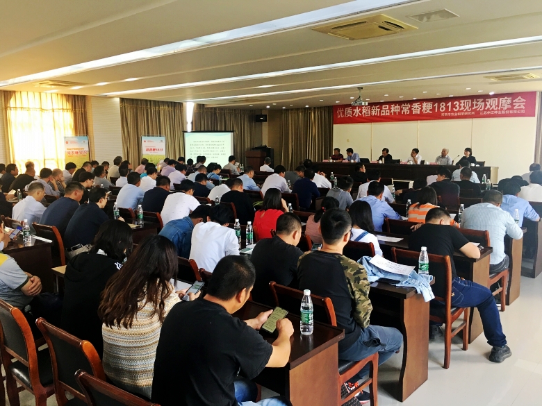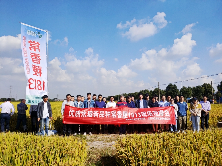 10月11日在江南福地常熟,我公司和常熟市農(nóng)業(yè)科學(xué)研究所聯(lián)合召開常香粳1813現(xiàn)場(chǎng)觀摩會(huì)。常香粳1813是常熟市農(nóng)科所最新育成并通過審定的早熟晚粳水稻品種,集米質(zhì)優(yōu)、熟期適中、抗倒性強(qiáng)、中抗稻瘟病、稻米有香味等諸多優(yōu)點(diǎn)于一身,適宜在江蘇省沿江及蘇南地區(qū)種植。