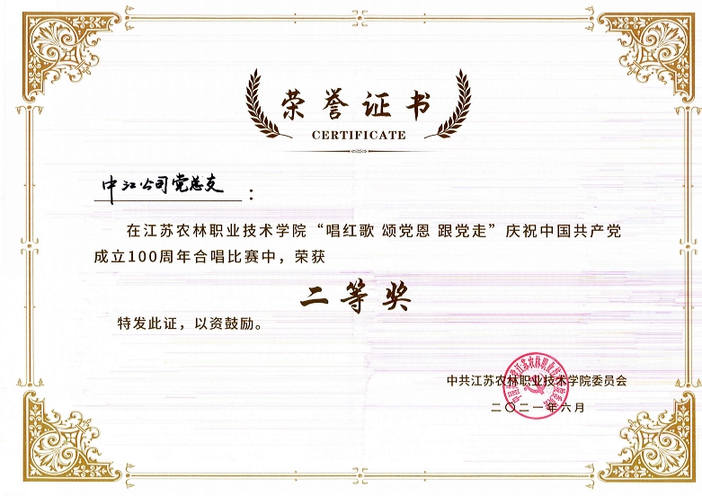 6月30日,為紀(jì)念中國共產(chǎn)黨建黨100周年,江蘇農(nóng)林職業(yè)技術(shù)學(xué)院舉辦“唱紅歌 頌黨恩 跟黨走”慶祝中國共產(chǎn)黨成立100周年合唱比賽暨“七一”表彰會。共有13個黨總支參賽,公司黨總支榮獲二等獎及優(yōu)秀組織獎。