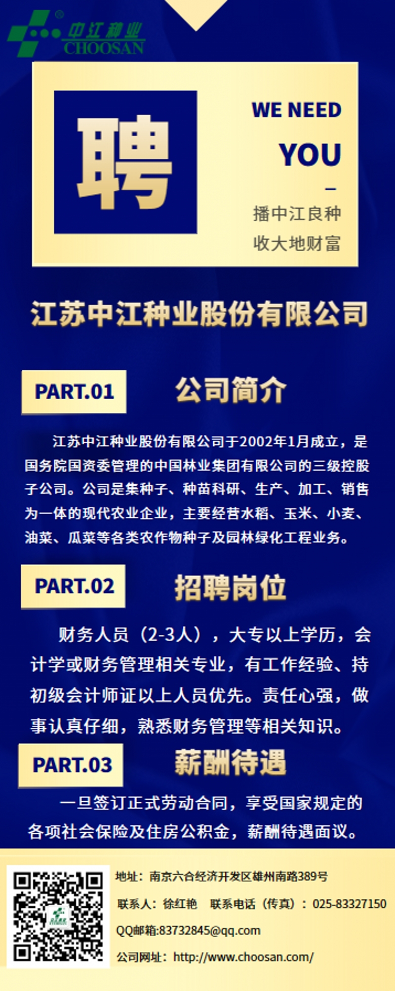 江蘇中江種業(yè)股份有限公司招聘啟事