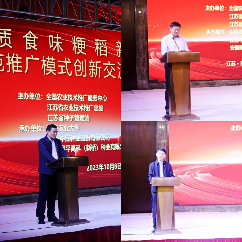 10月8日,優(yōu)質(zhì)食味粳稻“寧香粳9號”示范推廣模式創(chuàng)新交流觀摩會在東臺市召開。中國工程院院士萬建民,全國農(nóng)業(yè)技術(shù)推廣服務(wù)中心主任魏啟文、副主任劉信,江蘇省農(nóng)業(yè)農(nóng)村廳一級巡視員唐明珍,南京農(nóng)業(yè)大學(xué)黨委書記王春春、副校長丁艷鋒出席會議。湖南、湖北、河南、安徽、浙江、江西、貴州、吉林等省農(nóng)業(yè)科研和種子管理部門代表,江蘇淮河以南十市農(nóng)業(yè)農(nóng)村局分管局長、農(nóng)技推廣系統(tǒng)、種子管理系統(tǒng)代表,糧食加工企業(yè)和種子經(jīng)銷商代表共計300余人參加會議。本次會議由全國農(nóng)業(yè)技術(shù)推廣服務(wù)中心、江蘇省農(nóng)業(yè)技術(shù)推廣總站、江蘇省種子管理站主辦,我公司與南京農(nóng)業(yè)大學(xué)承辦。公司董事長李嘉、總經(jīng)理蔣紅云及市場部全體人員參加會議。