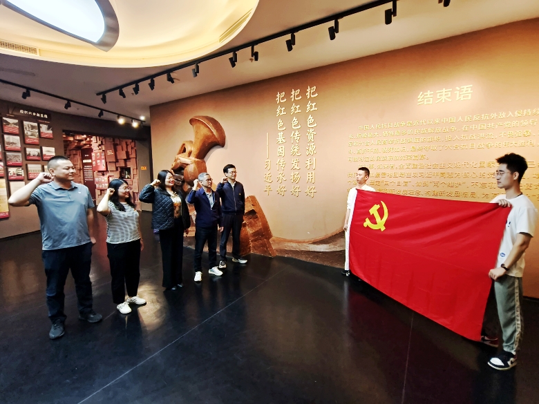 會后,前往南京六合紅色教育基地—“竹鎮(zhèn)市抗日民主政府”舊址參觀學(xué)習(xí),黨員們邊走邊看,邊聽邊議,在這里緬懷革命仁人志士,并重溫入黨誓詞,在感慨幸福生活來之不易的同時,確立新的奮斗目標(biāo)。