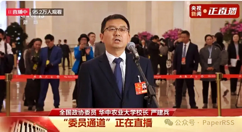 3 月 4 日下午,2025 年全國(guó)兩會(huì)首場(chǎng) “委員通道” 開(kāi)啟,來(lái)自湖北的全國(guó)政協(xié)委員、華中農(nóng)業(yè)大學(xué)校長(zhǎng)嚴(yán)建兵第一個(gè)走上通道接受采訪。