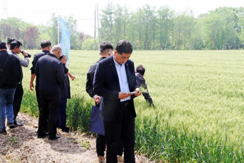 上午,與會代表們一同前往揚麥45示范田進行實地參觀。在示范田中,大家仔細考察了揚麥45的長勢、抗逆性以及產量表現(xiàn)等關鍵指標。揚麥45憑借其突出的高產性、抗逆性和適應性,贏得了參會人員的高度認可。