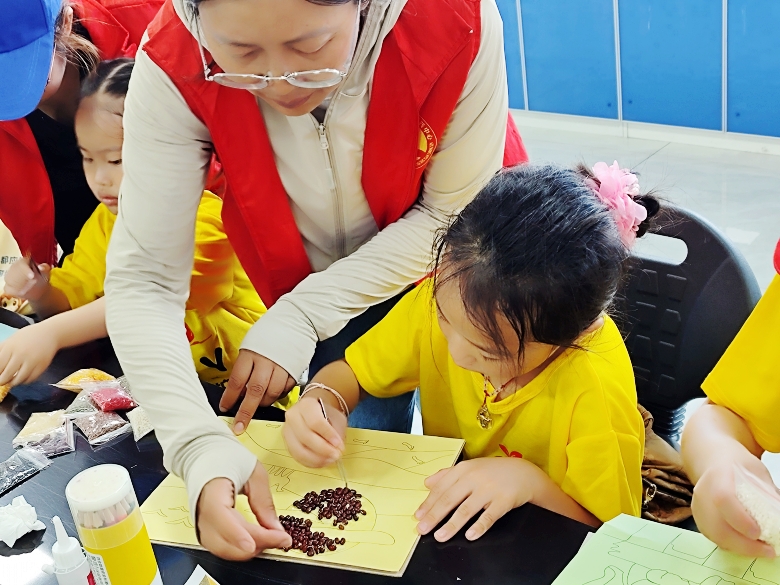 活動(dòng)還特別設(shè)置了“從田地到餐桌”主題互動(dòng)課程。通過生動(dòng)講解與互動(dòng)問答,同學(xué)們系統(tǒng)了解了糧食從育種、種植、收獲到加工食用的完整產(chǎn)業(yè)鏈,深化了對(duì)糧食來之不易的認(rèn)知。最后,孩子們?cè)诠ぷ魅藛T指導(dǎo)下,發(fā)揮創(chuàng)意,用五谷雜糧創(chuàng)作出豐富多彩的粘貼畫。這一環(huán)節(jié)不僅激發(fā)了創(chuàng)造力,也加深了他們對(duì)農(nóng)作物形態(tài)特征的了解。