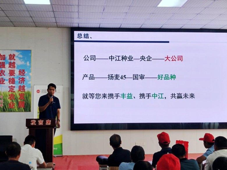 金秋九月,小麥種子銷售進(jìn)入旺季,9月11日,中江種業(yè)與揚(yáng)州市豐益現(xiàn)代農(nóng)業(yè)發(fā)展有限公司在高郵市聯(lián)合舉辦“揚(yáng)麥45”專場(chǎng)銷售推介會(huì),來自高郵市各鄉(xiāng)鎮(zhèn)的種子零售商、種植大戶等300余人參會(huì)。