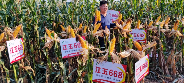 在現(xiàn)場觀摩環(huán)節(jié),參會人員實地考察了宿遷中江自主選育的玉米品種“江玉668”的田間綜合表現(xiàn)。宿遷中江總經(jīng)理戴傳剛詳細介紹了該品種的特征特性及多年來的生產(chǎn)表現(xiàn)。重點指出,“江玉668”在今年前期高溫干旱、后期寡照多雨的不利氣候條件下,仍表現(xiàn)出耐旱性強、結(jié)實性好、無青枯、綜合抗病能力突出等優(yōu)勢,展現(xiàn)出良好的環(huán)境適應(yīng)性與穩(wěn)產(chǎn)潛力。