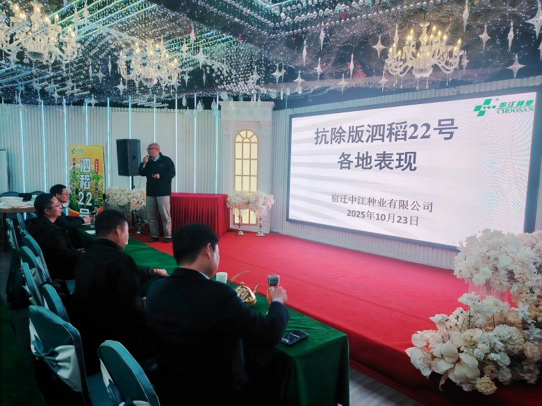 宿遷中江種業(yè)總經(jīng)理戴傳剛在總結(jié)發(fā)言中指出,“泗稻22號”自審定推廣以來,以其高產(chǎn)穩(wěn)產(chǎn)、抗逆性強(qiáng)、出米率高等優(yōu)點(diǎn)贏得了市場的廣泛認(rèn)可。公司將持續(xù)深化“產(chǎn)學(xué)研”合作,加強(qiáng)優(yōu)良品種的篩選、引進(jìn)與推廣工作,扎實(shí)做好常規(guī)水稻的“三圃”種子生產(chǎn),為經(jīng)銷商和種植戶持續(xù)提供更多優(yōu)質(zhì)種源。他最后表示,公司愿與廣大合作伙伴一道,“共播中江良種,同享大地豐收”。