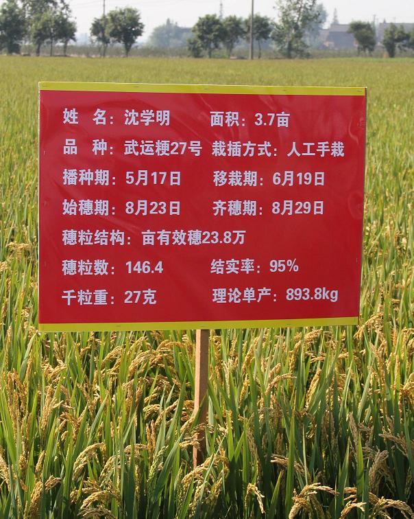 與會(huì)領(lǐng)導(dǎo)、專家和代表們對(duì)現(xiàn)場(chǎng)進(jìn)行觀摩,海南鎮(zhèn)農(nóng)科站肖云站長(zhǎng)對(duì)超高產(chǎn)攻關(guān)示范方的栽培管理做了全面介紹。通過“精苗穩(wěn)前,控蘗優(yōu)中,大穗強(qiáng)后”的精確定量栽培技術(shù)核心管理,“武運(yùn)粳27號(hào)”示范方達(dá)到了良好的效果。通過9月20-23日田間考察:畝平均有效穗24.8萬(wàn),穗粒數(shù)平均136.5,按常年結(jié)實(shí)率93%、千粒重27克計(jì)算,平均理論單產(chǎn)850公斤。