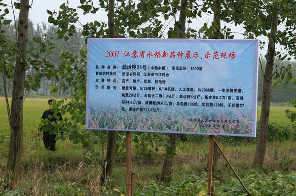2007年9月20日,由省種子站、作物栽培技術(shù)指導(dǎo)站聯(lián)合組合的中粳稻新品種示范觀摩會(huì)在江蘇淮安成功舉行。與會(huì)專家代表兩百多人先后參觀了白馬湖農(nóng)場(chǎng)、淮安農(nóng)科院承擔(dān)的省水稻新品種區(qū)域試驗(yàn)、生產(chǎn)試驗(yàn)以及品種展示田。大家一致認(rèn)為,我省新近選育的一批水稻新品種,無論在產(chǎn)量,抗性還是米質(zhì)方面都有較大提高,涌現(xiàn)了一批高產(chǎn)優(yōu)質(zhì)高抗水稻新品種典型。