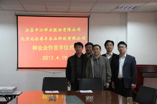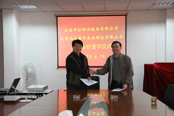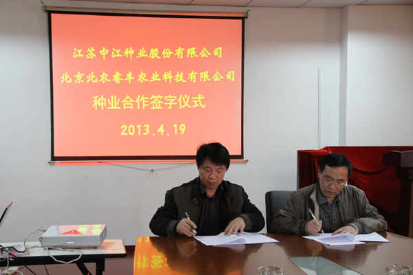 簽字儀式上,經(jīng)雙方磋商達成一致,決定在平等自愿、優(yōu)勢互補、互利共贏的基礎上,成立江蘇中江種業(yè)股份有限公司北京分公司。